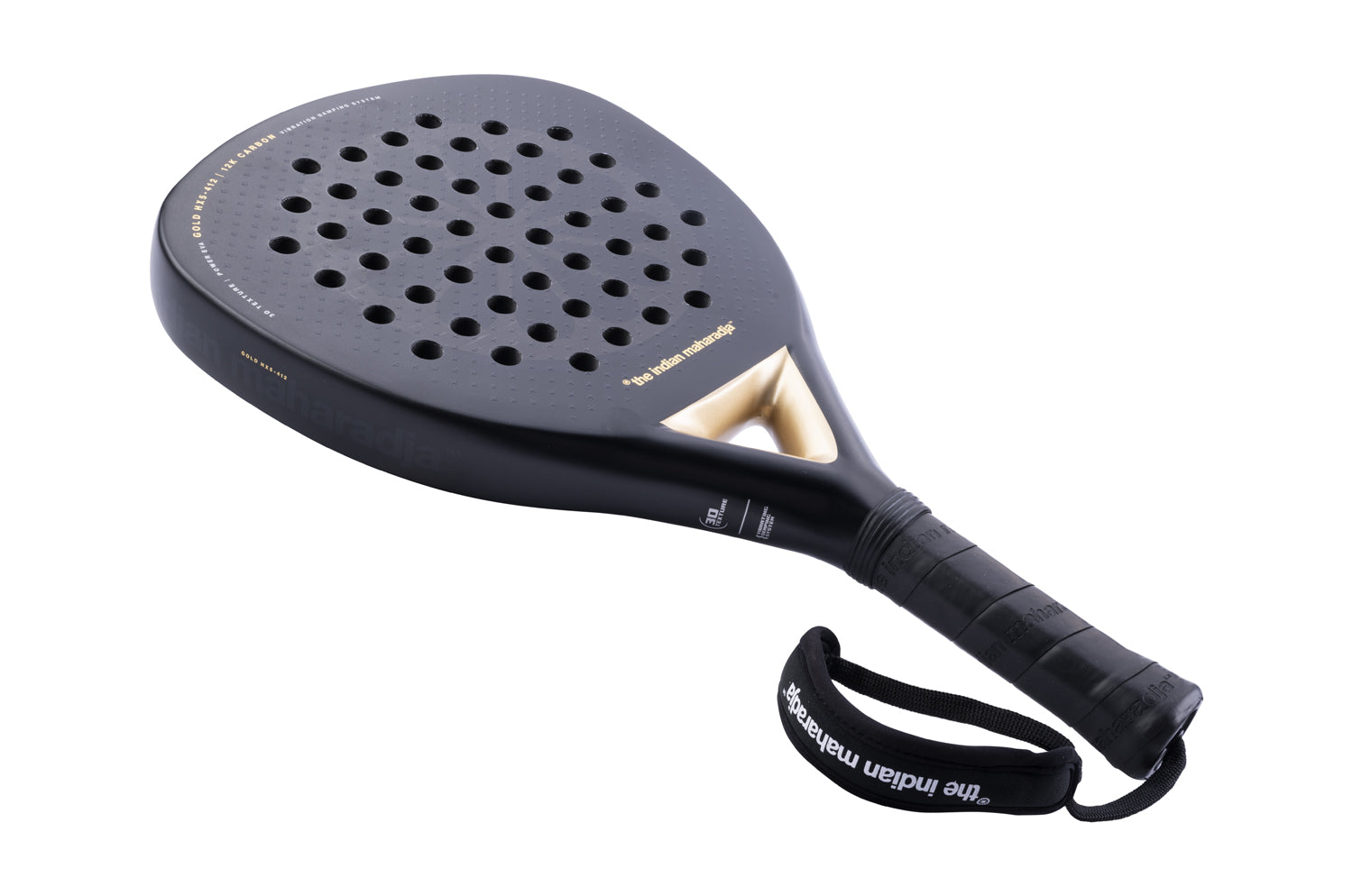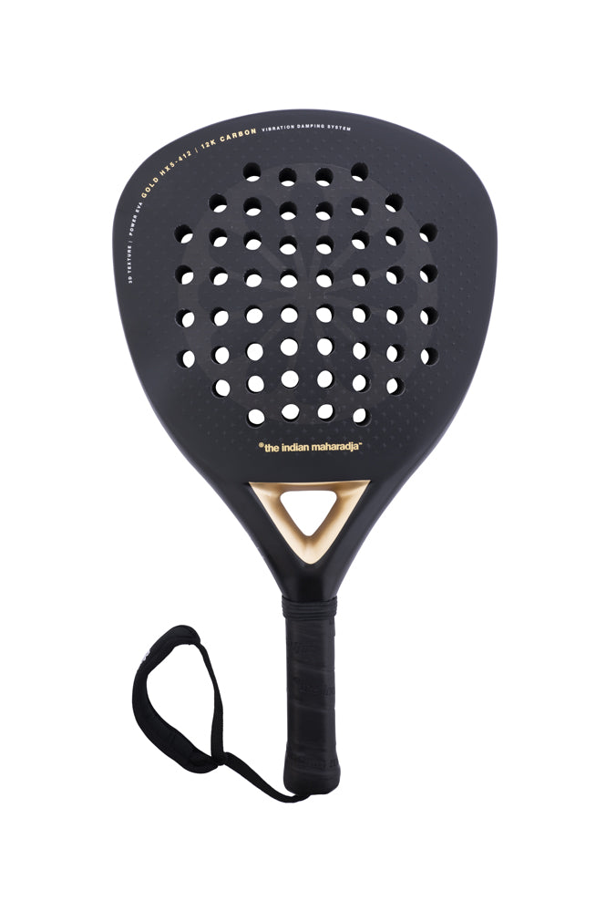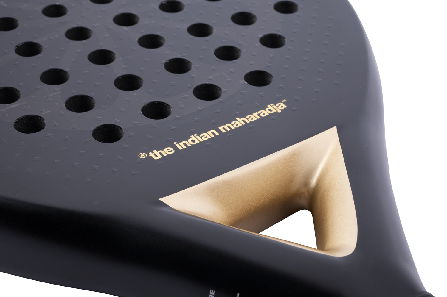 The Indian Maharadja Gold HX5-412 heeft een stijlvol en uitdagend ontwerp. Een 12K carbon racket dat aan alle eisen van de fanatieke en gevorderde padel speler voldoet. Met een hybride vorm en een extra grote sweet-spot biedt de Gold HX5-412 de perfecte mix van power, controle en wendbaarheid. Het carbon frame en het slagvlak van 12K carbon zorgen voor duurzaamheid, precisie en gecontroleerde slagkracht. De ruwe 3D textuur van het slagvlak geeft je de mogelijkheid om meer effect en spin aan je krachtige slagen toe te voegen. Met de hoogwaardige EVA tech pro-kern en de kurkdemping geïntegreerd in de ronding van het racketblad (yoke) ben je verzekerd van een uiterst aangenaam balgevoel en vrijwel geen trillingen. Dit racket optimaliseert het spel van de gevorderde speler.